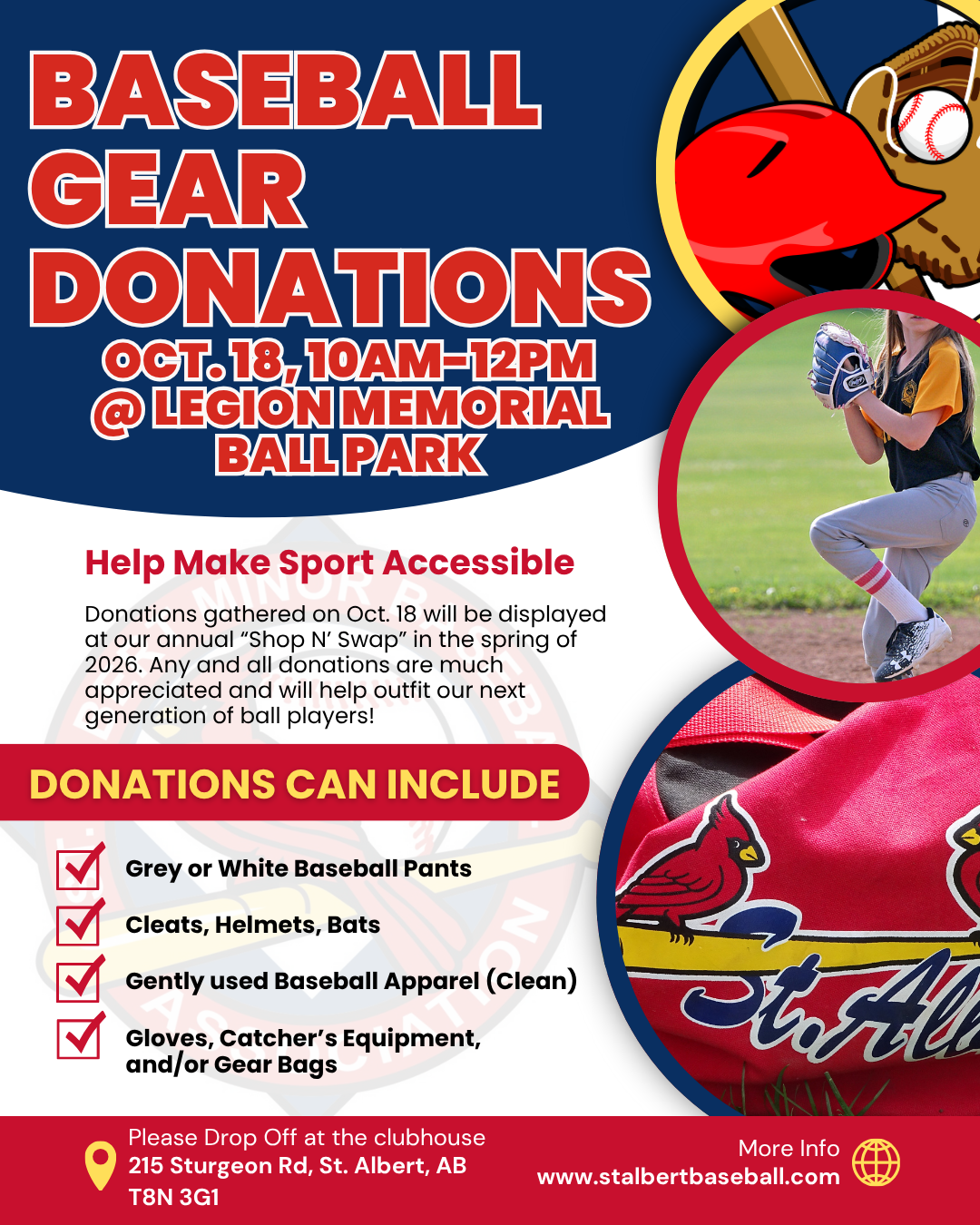 Why store it until April 2026 when you can donate any clean, gently used baseball apparel and gear that your athlete has outgrown.
