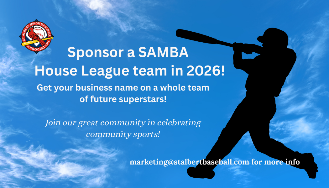 For more information please contact marketing@stalbertbaseball.com or reach out to one of our Directors.